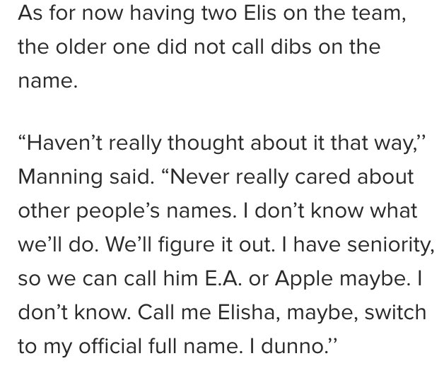 Eli Manning Has A New Teammate Named Eli So He S Open To Going By His Real Name Elisha Sbnation Com